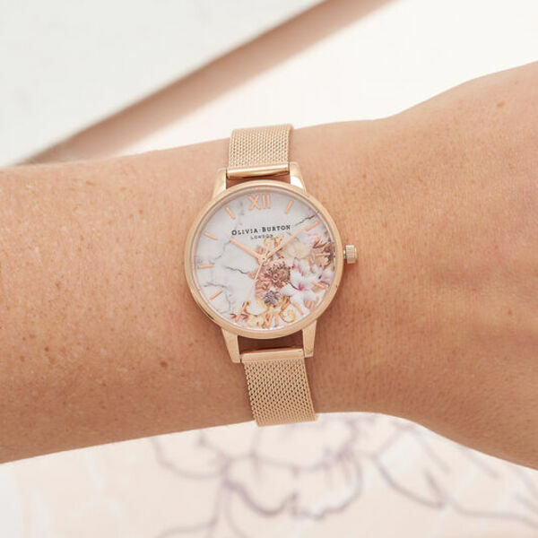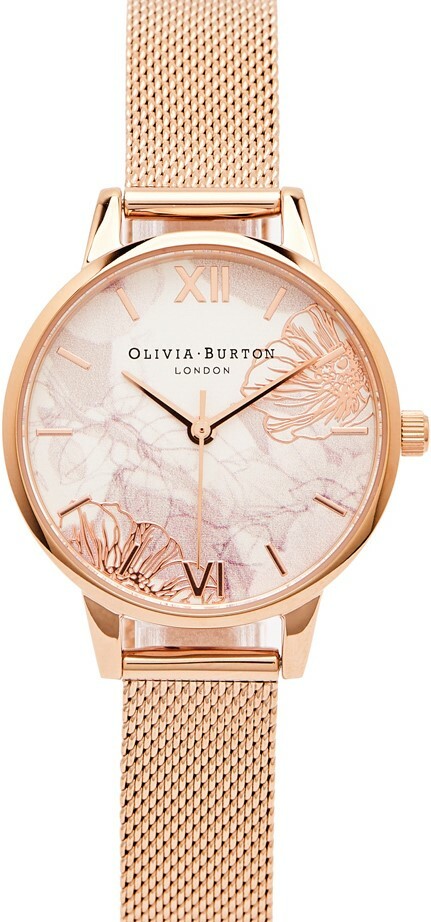 獨具風采,其砂磨面表盤上呈現出精心設計的抽象效果,搭配著閃耀的玫瑰金海葵裝飾在30毫米寬的錶盤上舞動。搭載了淡粉色皮革錶帶,設計充滿了藝術氛圍且極富時尚感。這款腕錶在藝術性和時尚性之間達到了完美的平衡,定能引起您的無限驚艷。