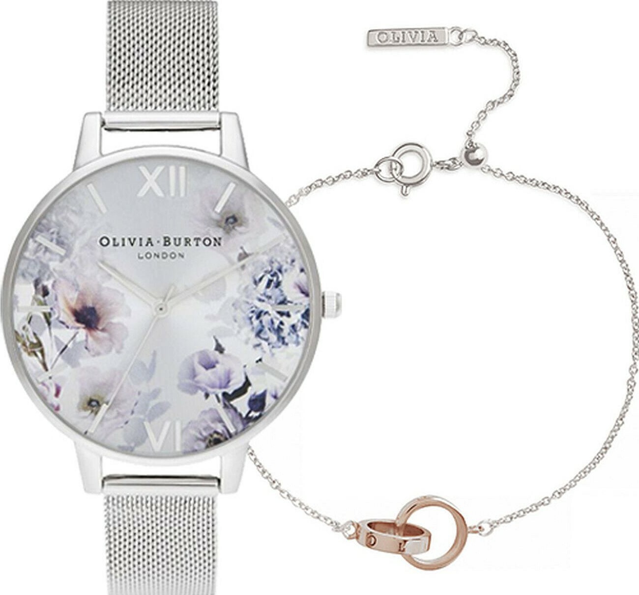 萬年鐘錶 - Olivia Burton 藝術時尚 Sunlight Florals Set 陽光花卉腕錶手鏈限量女錶套組 OBGSET145 錶徑38MM