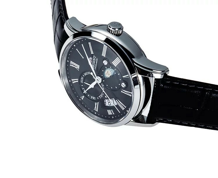 ORIENT 東方 月象機械錶 黑面月象機械皮革男錶 RA-AK0011B
