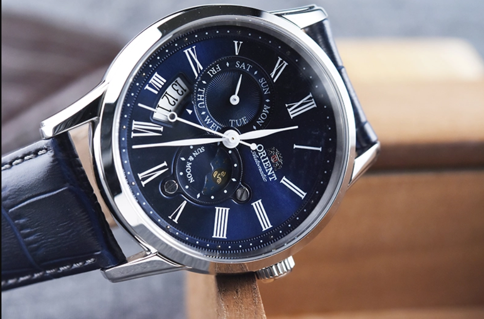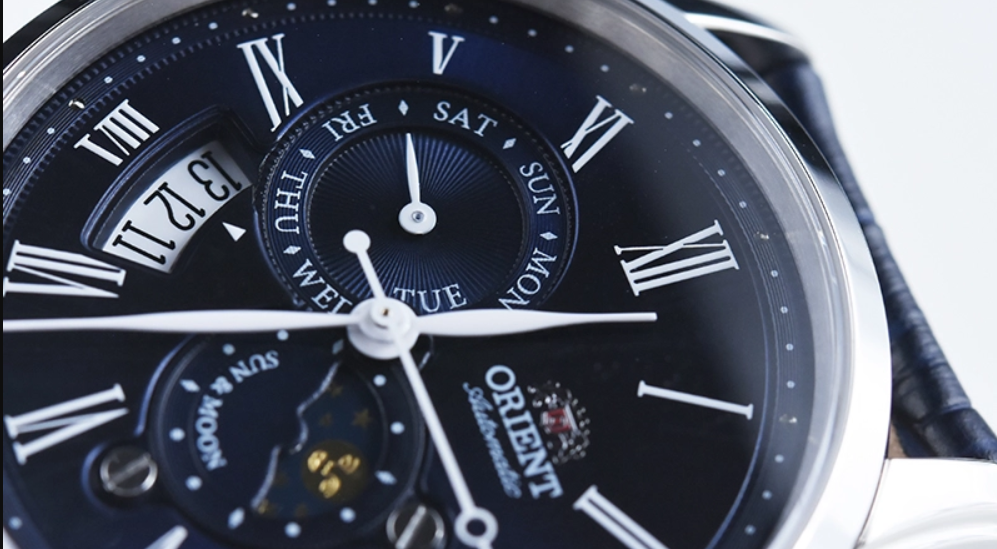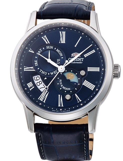 ORIENT 東方 月象機械錶 藍面月象機械皮革男錶 RA-AK0011D