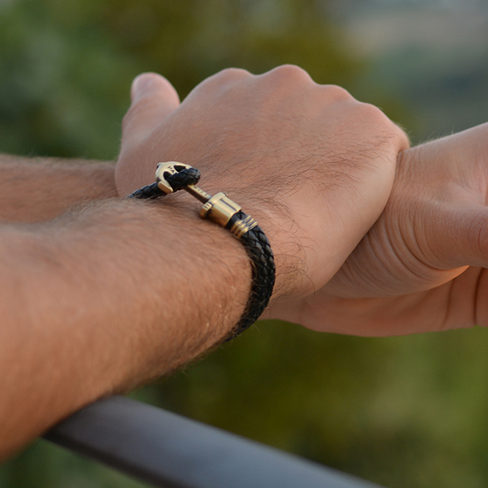 萬年鐘錶 - 德國品牌 PAUL HEWITT 船錨錶飾品 PH-PH-L-M-B 設計師品牌 皮革系列 黑色皮革古銅色船錨扣 XS/S/M/L/XL/XXL