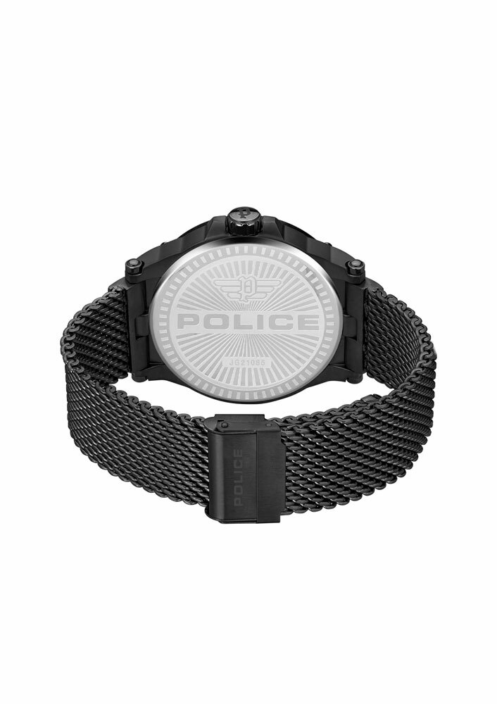 萬年鐘錶 - POLICE 全黑系列大錶徑不鏽鋼米蘭錶帶男錶 PEWJG2108504 錶徑 47MM