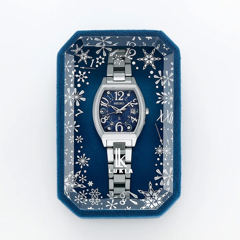 優雅且大小適中的酒桶殼型女錶,使用輕巧的鈦金屬材質,搭配炭墨色並有放射狀設計的面盤,展現內斂的氛圍。