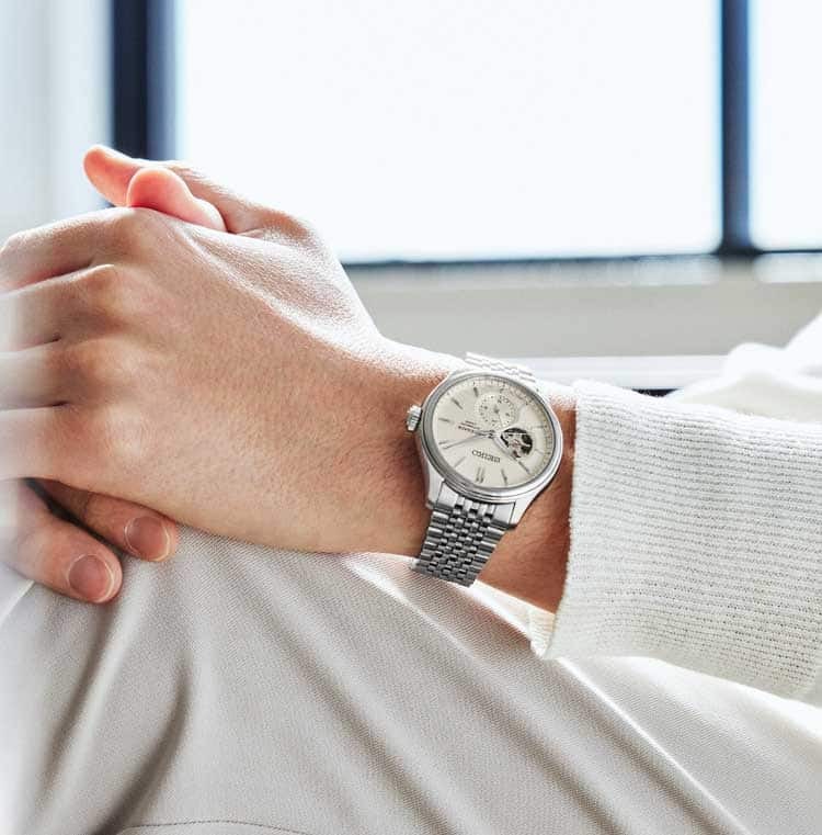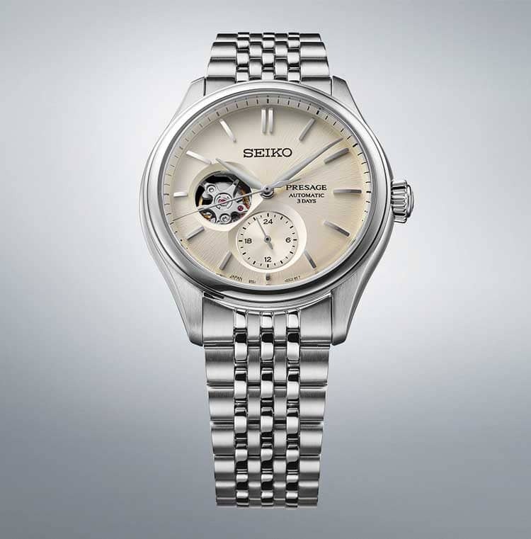此系列錶款的核心為擁有豐富紋理的弧形面盤,在視覺上展現了天然紡織品的柔軟觸感,配戴時可感受到日式職人美學。