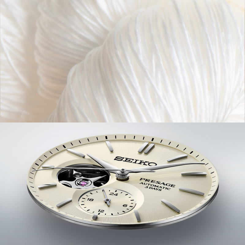 此系列錶款的核心為擁有豐富紋理的弧形面盤,在視覺上展現了天然紡織品的柔軟觸感,配戴時可感受到日式職人美學。