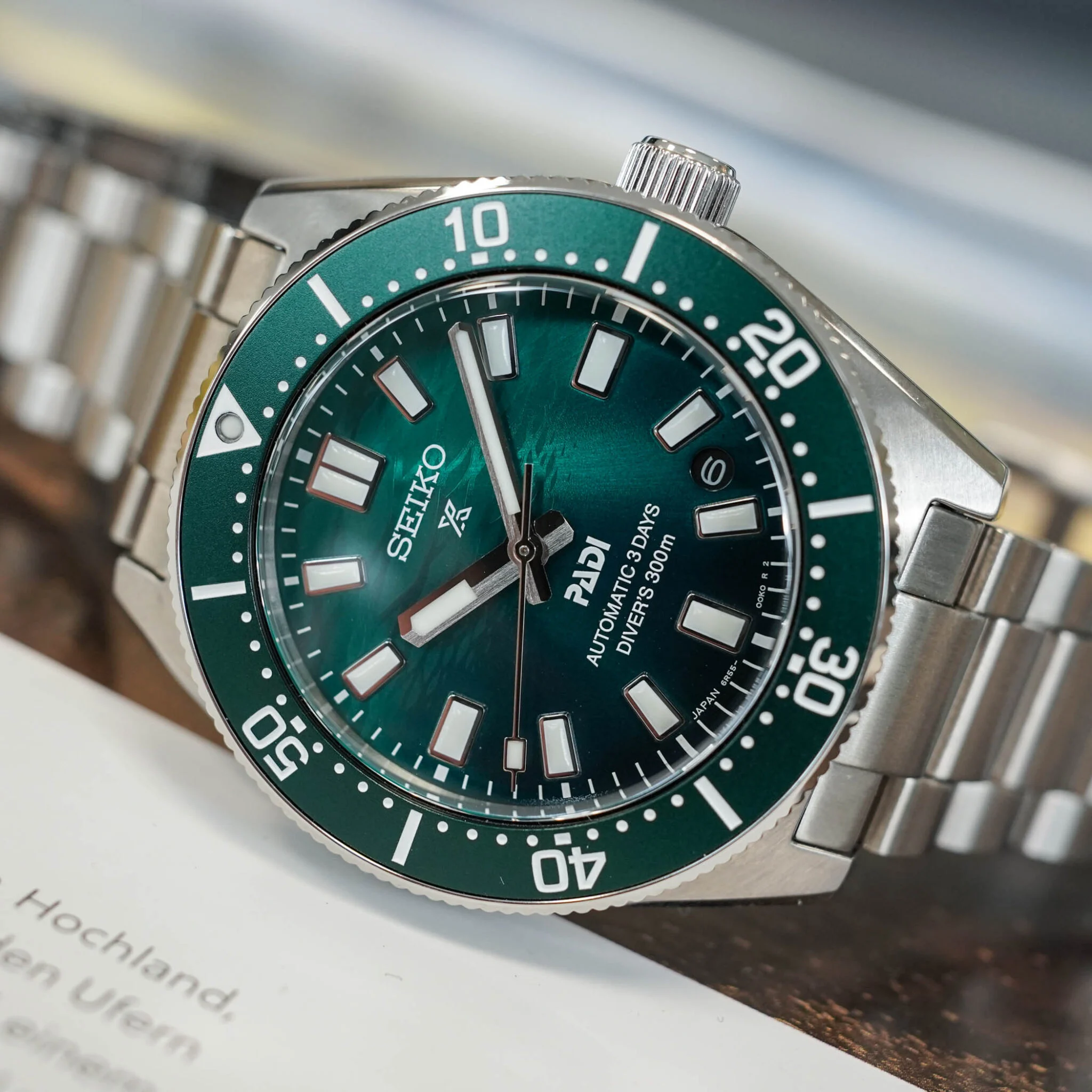 • 武士潛水錶 DIVER SCUBA  綠色面陶瓷錶圈三日鍊機芯300米潛水錶 DIVER SCUBA  SPB501J1  / 6R55-00N0G