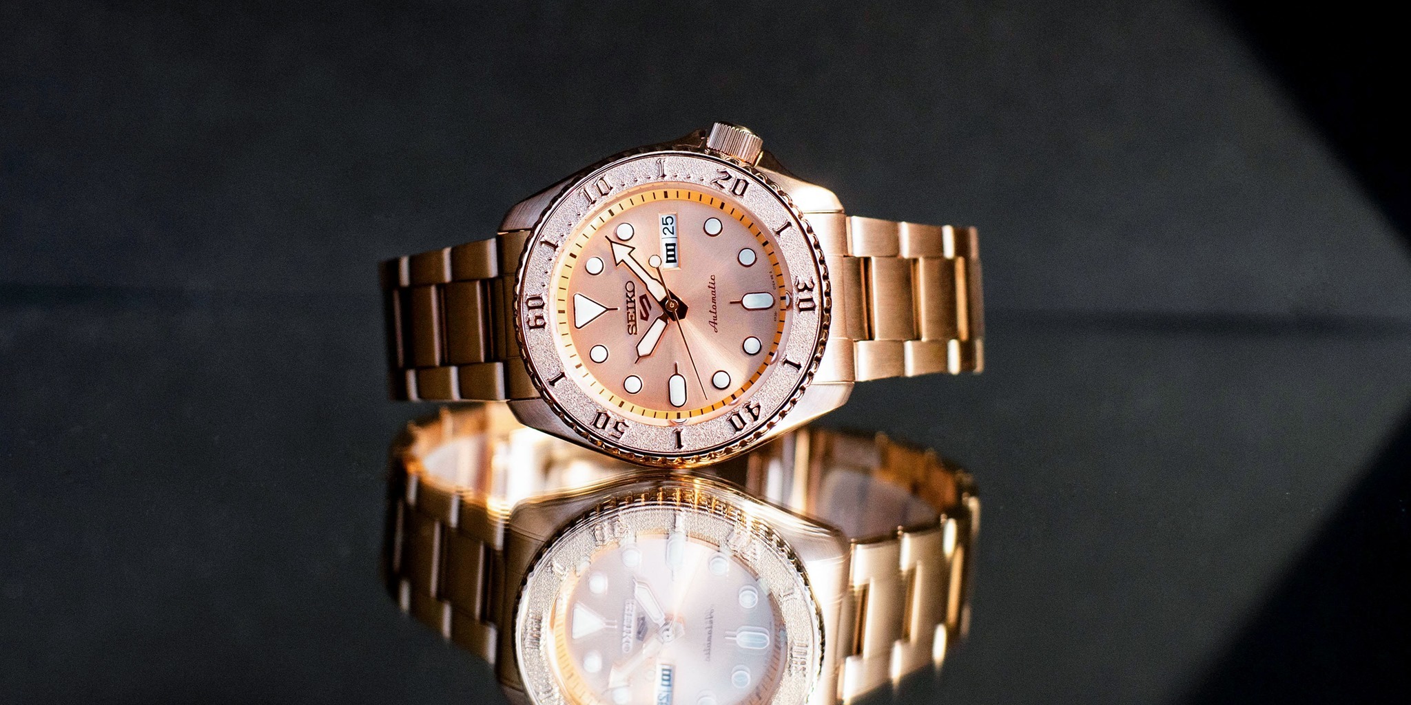 萬年鐘錶 - SEIKO 5 Sports 玫瑰金特別版機械水鬼 4R36-08E0K / SRPE72K1 錶徑42.5MM