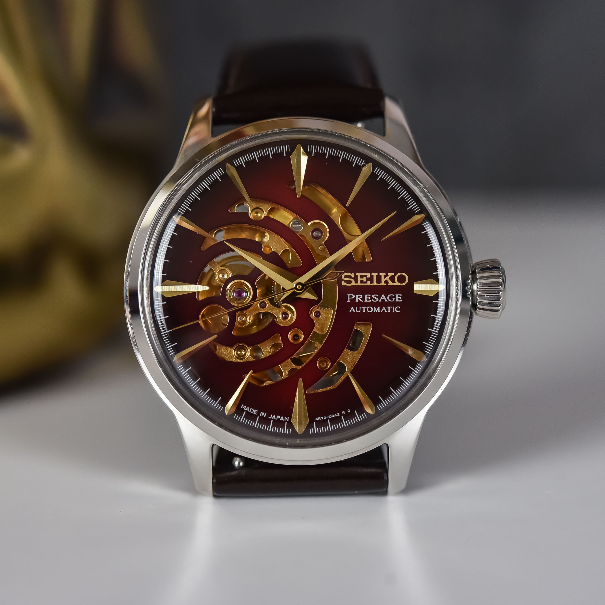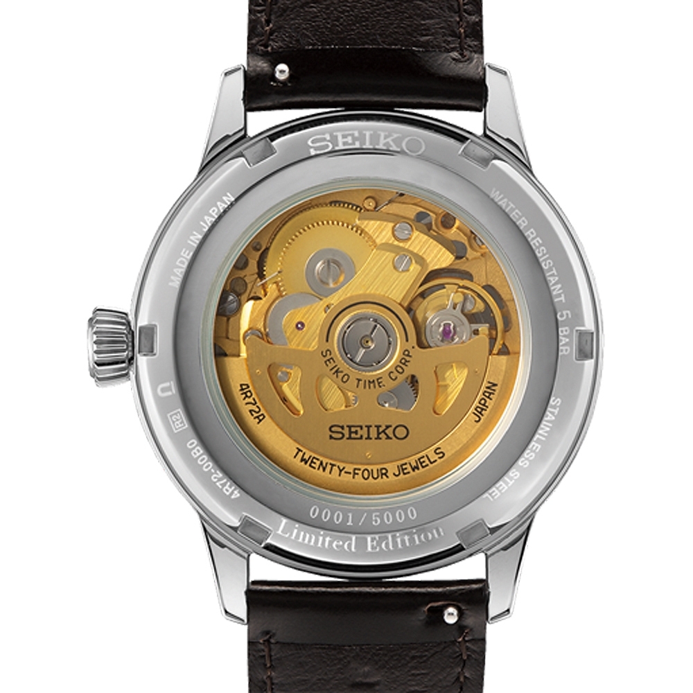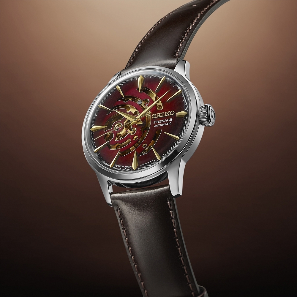 此次限量款搭載新機芯4R72,外觀以金色裝飾,並在面盤上設計了象徵調酒表面水波紋的鏤空。
