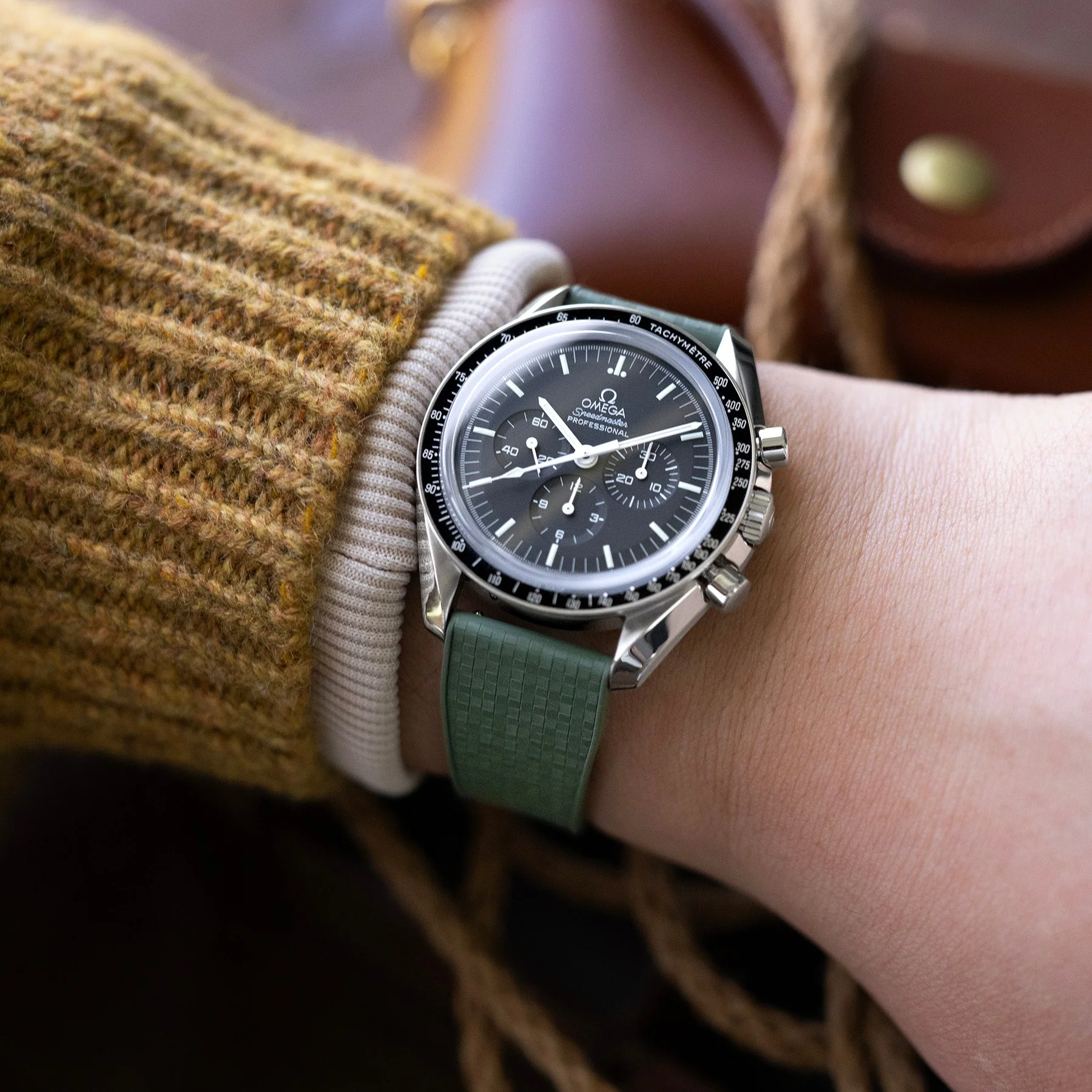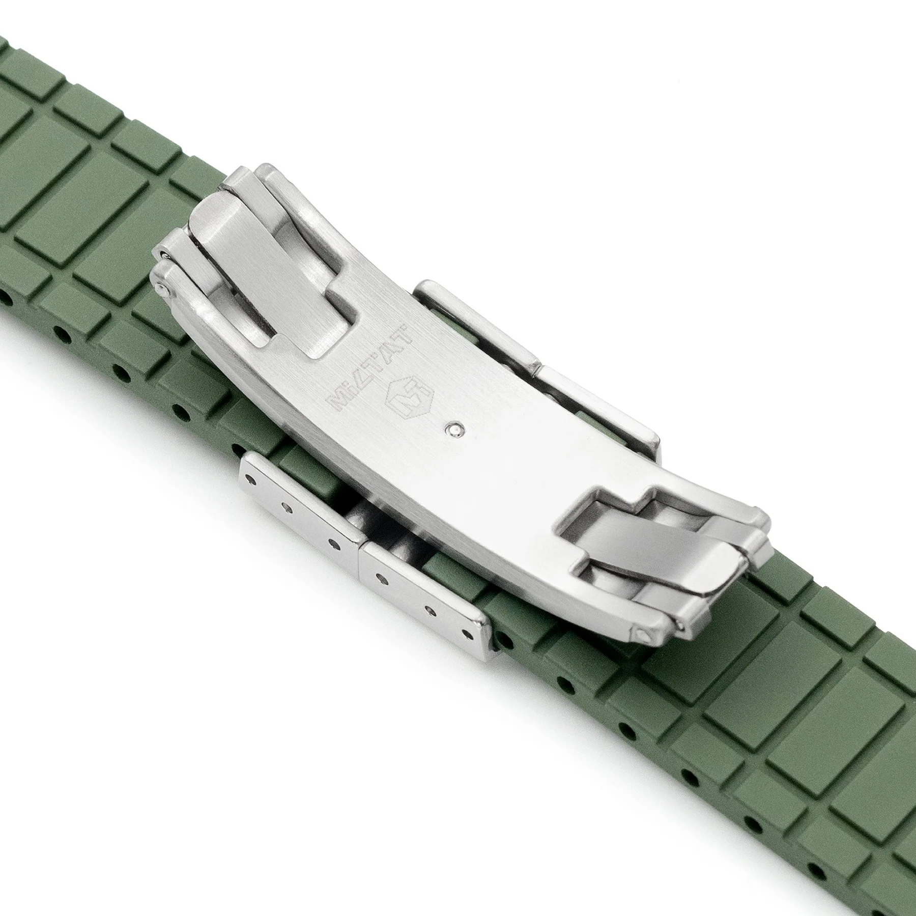 萬年鐘錶 - 太空人錶帶 MiLTAT FKM29 20MM藤編紋理綠色快拆FKM氟橡膠蝴蝶摺疊扣錶帶 FKM29I-20A16BDE25