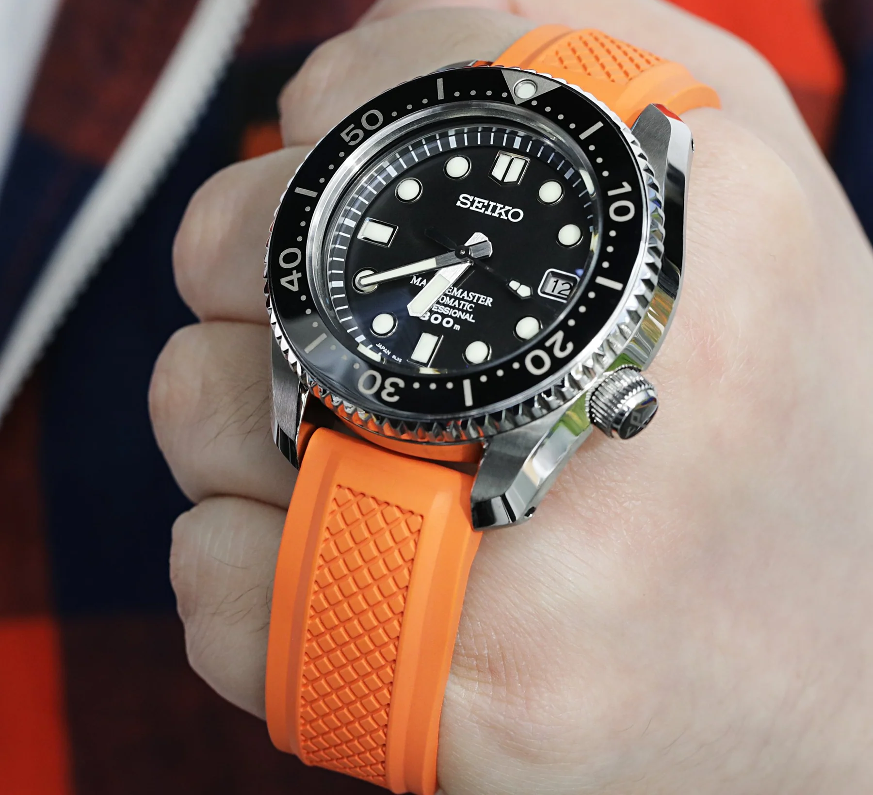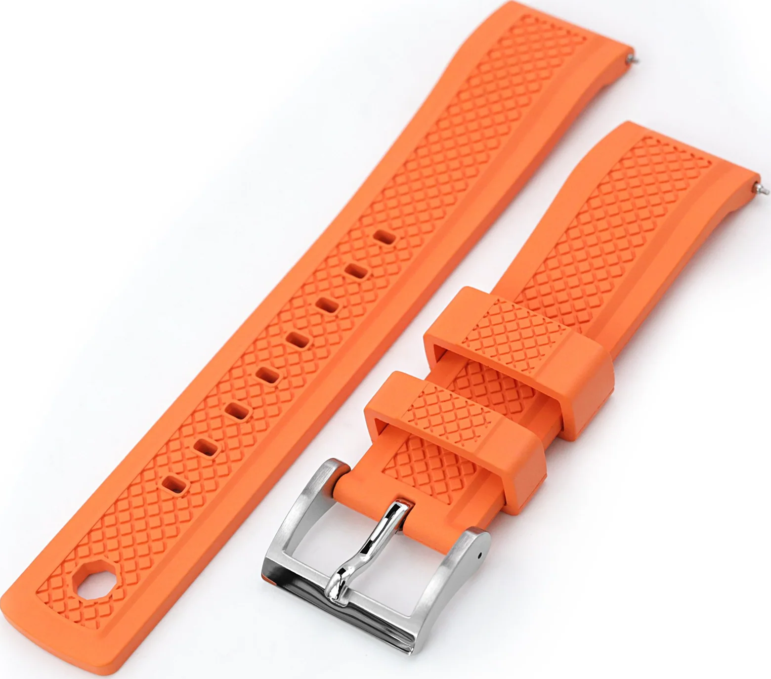 萬年鐘錶 - 太空人錶帶 錶帶寬20MM平口各大品牌代用橡膠錶帶 Crisscross 十字形 橙色FKM橡膠快拆錶帶 FKM09J-20A18PBU66