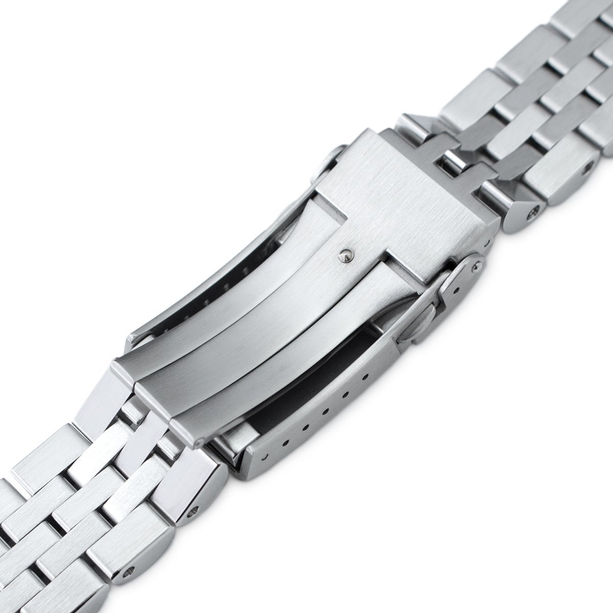 精工Seiko錶改裝用的實心不鏽鋼錶帶,專用彎頭耳不鏽鋼錶帶精工代用帶。MiLTAT 專用彎耳代用錶帶是度身訂造給SEIKO 精工登山運動員 SARB013 / SARB015 / SARB017型號使用的,全部選用316L不鏽鋼板材,結構由組裝螺絲來調較錶帶長度,而不是採用廉價的薄針,以便靈活裝拆的同時亦能保持其堅固性。度身訂造給 精工登山運動員 專用彎耳錶帶,附彎曲的帶頭,完美配合您的 登山運動員 Alpinist 手錶。
