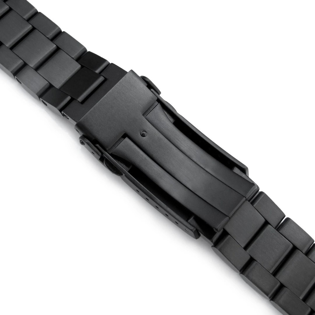 DLC的極高硬度,耐磨性和光滑性使其成為適用於不鏽鋼錶鍊的理想塗層。配上"V扣" 以V形安全片雙重鎖緊錶扣,流線型的外殼設計配合斜角邊緣剪材,令外觀更覺紮實。