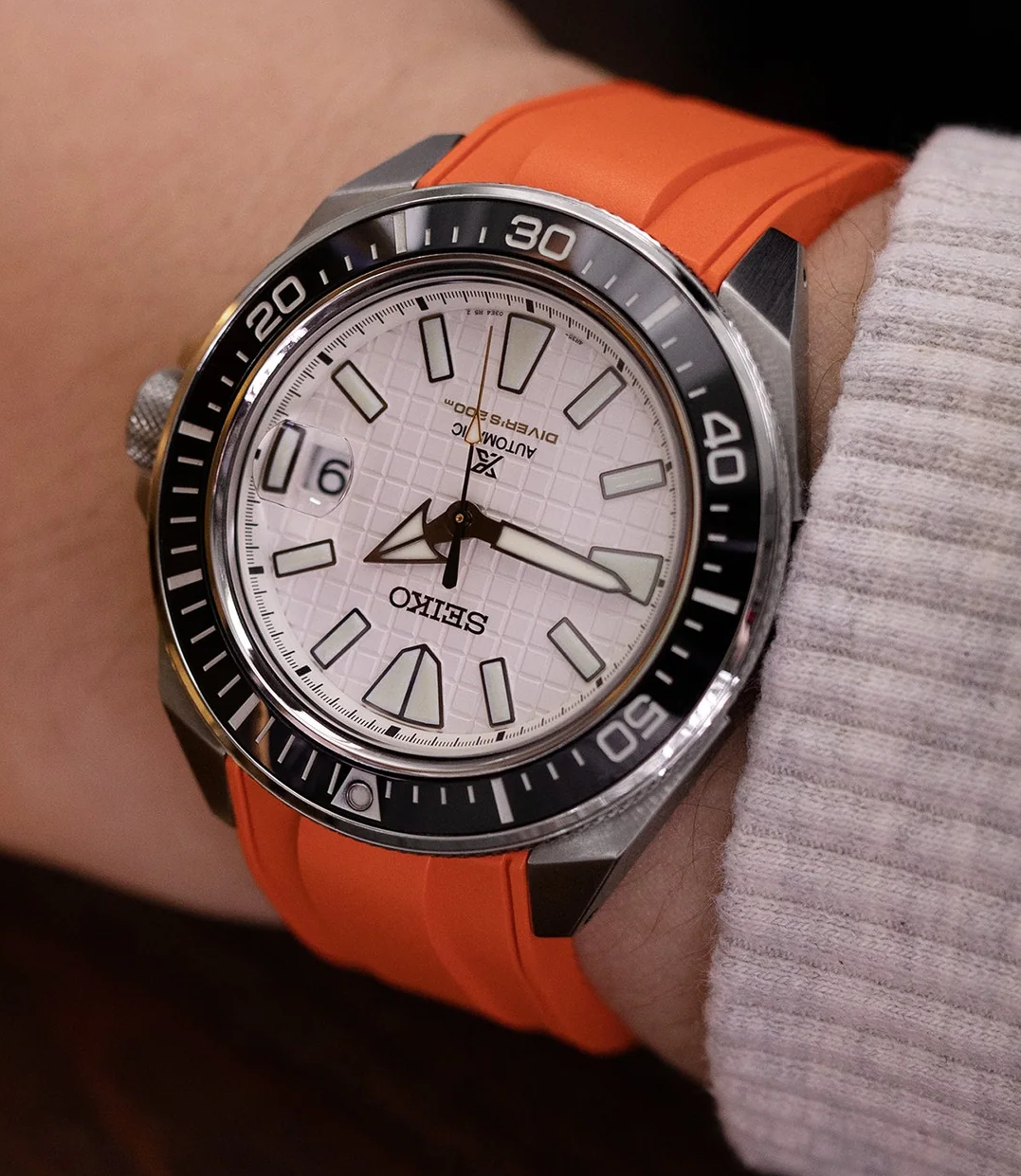 萬年鐘錶 - 太空人錶帶 - SEIKO Samurai 武士系列專用錶帶 橘色 彎曲錶耳 橡膠錶帶 王者武士 專用代用 XSRX1AJ-22A20BZZ00