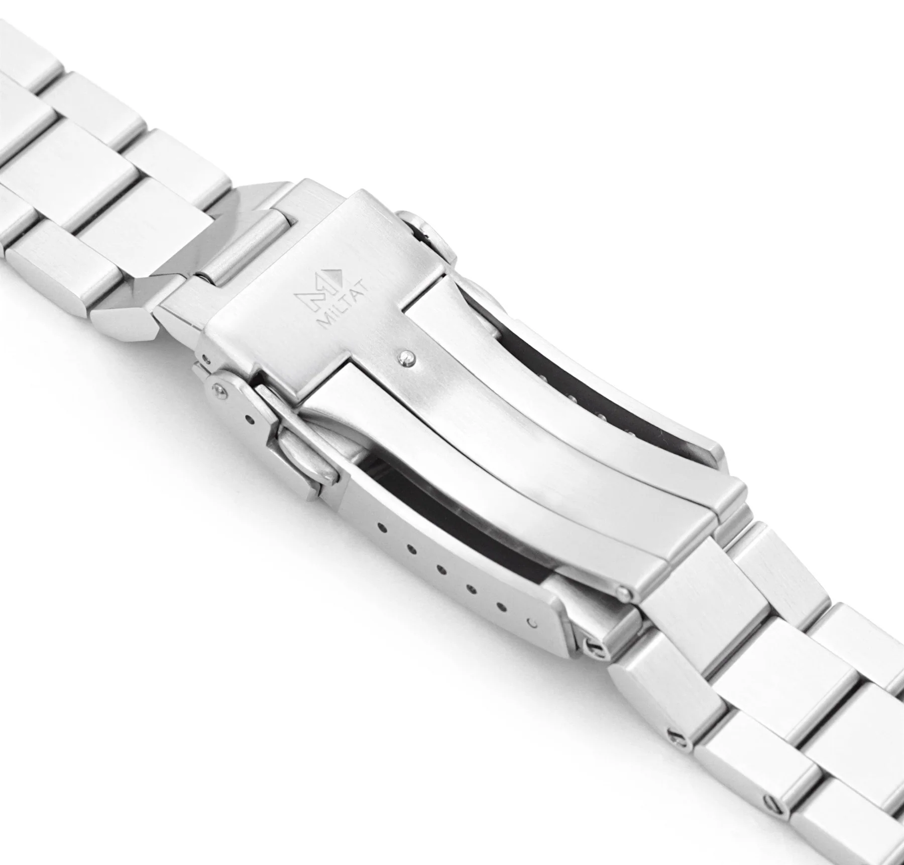 錶扣款式 / 扣飾面 : 316L鋼 V扣- V形安全片,按鍵式雙鎖潛水錶帶
