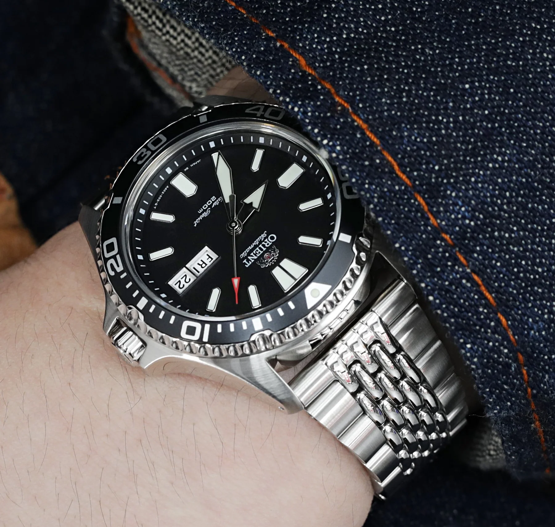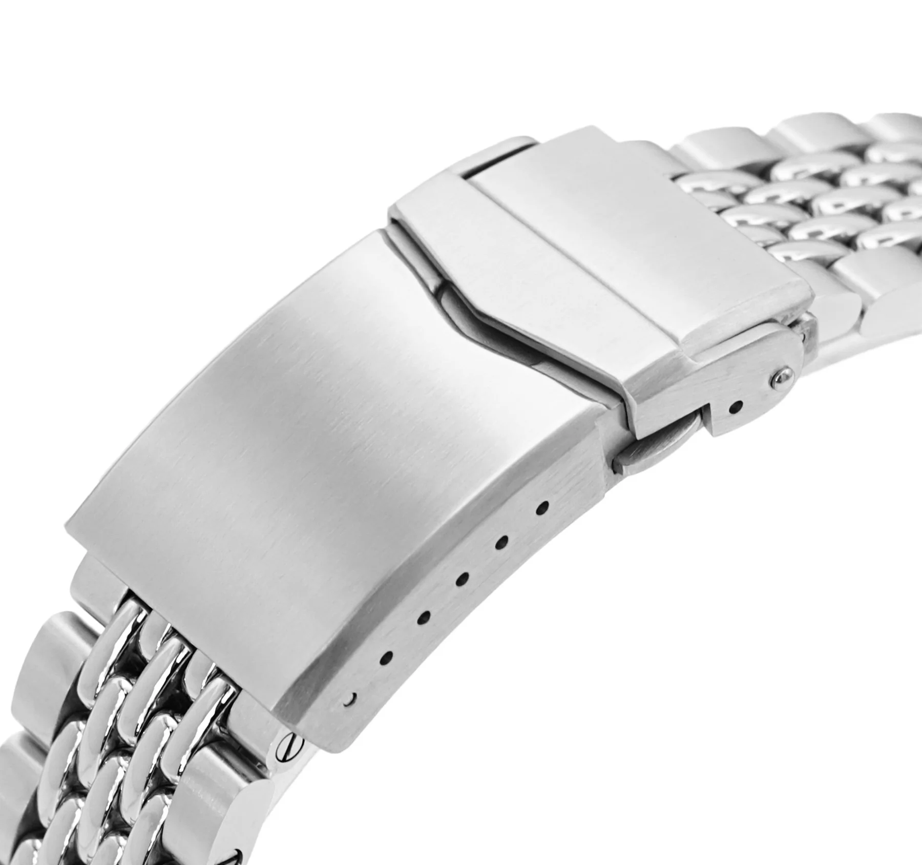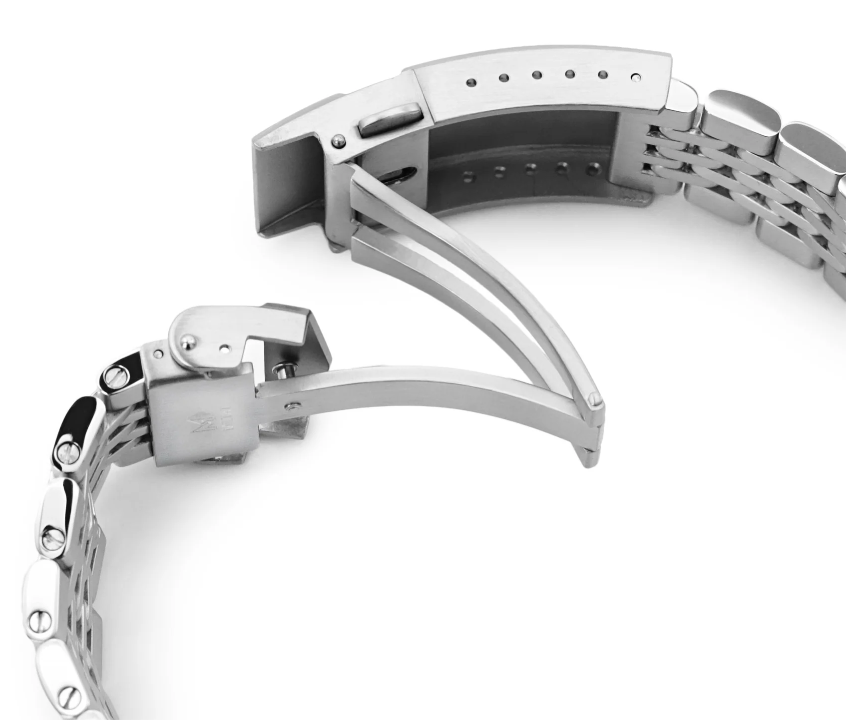 錶扣款式 / 扣飾面 : 316L鋼 V扣- V形安全片,按鍵式雙鎖潛水錶帶