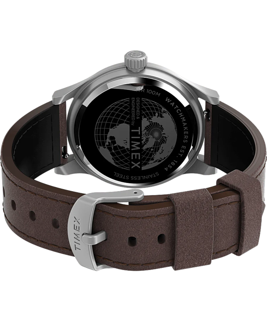 萬年鐘錶 - TIMEX 天美時 奶油色錶盤棕色皮錶帶男錶 TW2V07300 錶徑 41MM