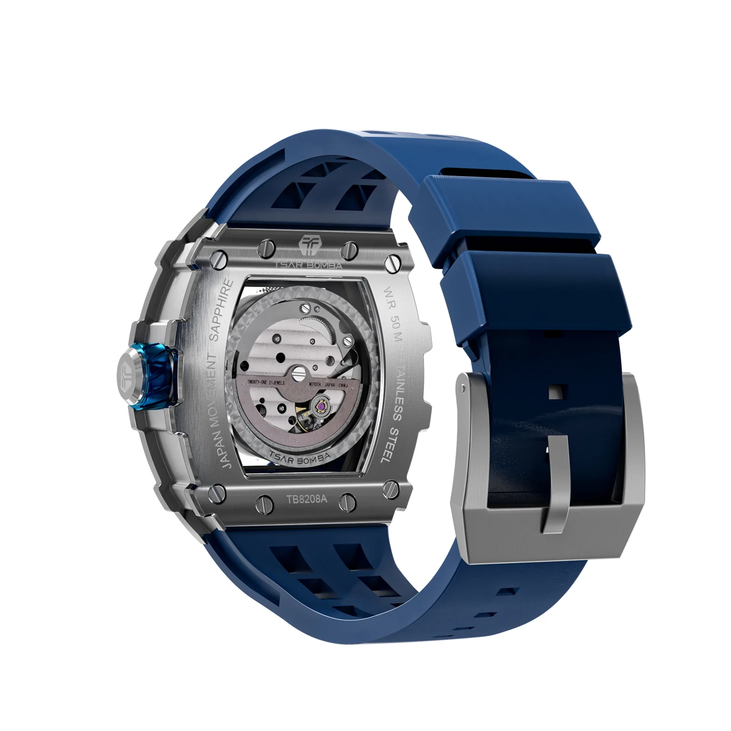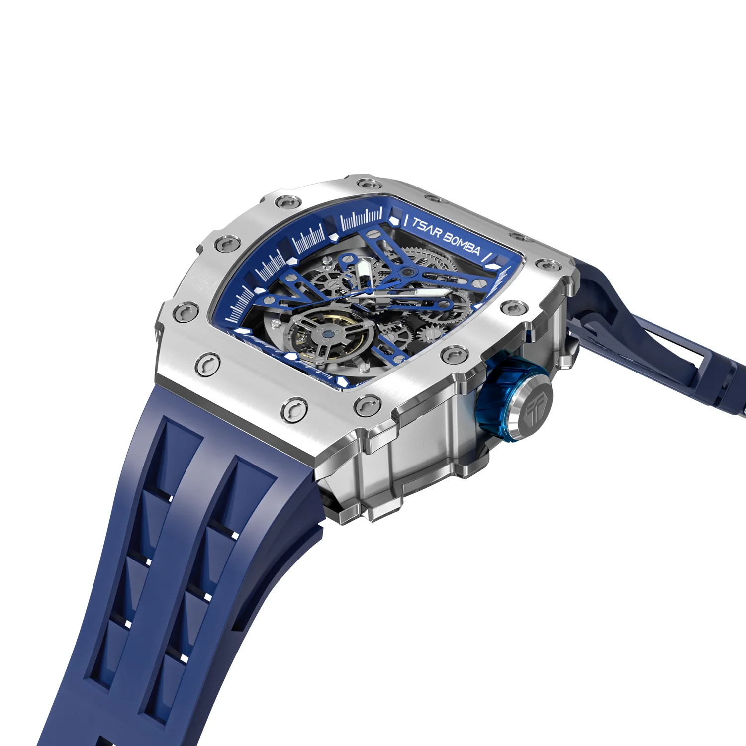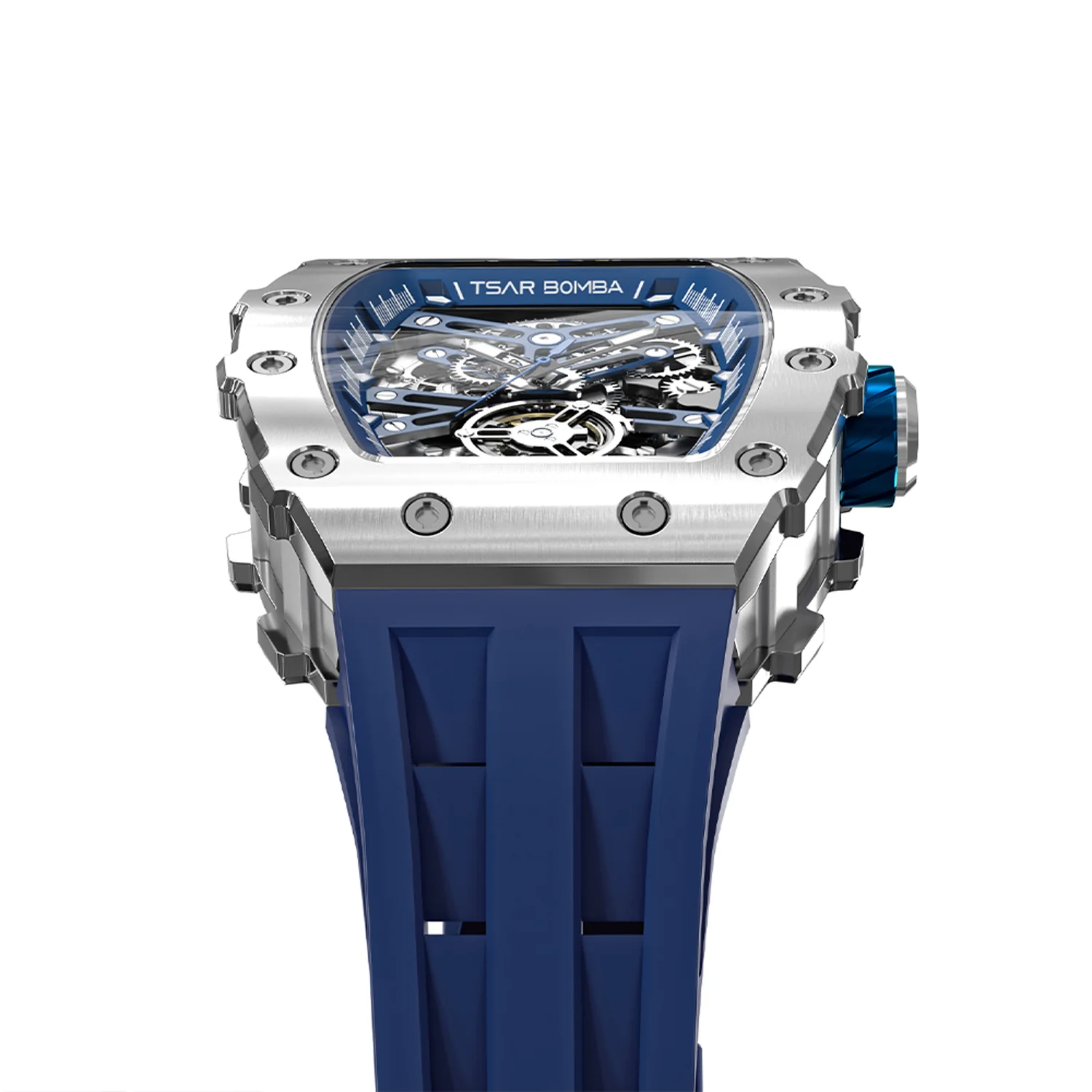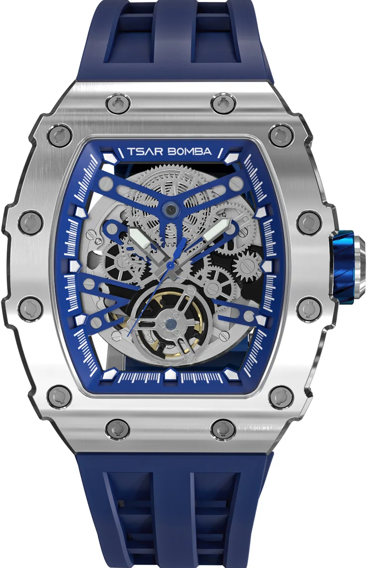 萬年鐘錶 - TSAR BOMBA 機械公爵 銀色框矽膠錶帶機械透視機芯男錶 TB8208A-11 錶徑 43MM