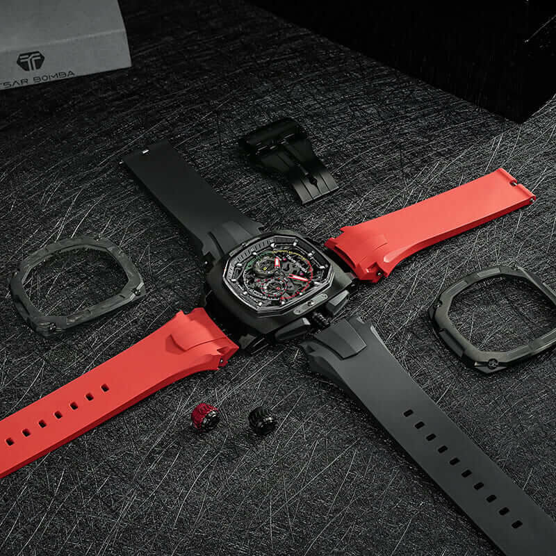 錶鏈材質 : 氟橡膠錶帶 (套組供兩條錶帶可替換)