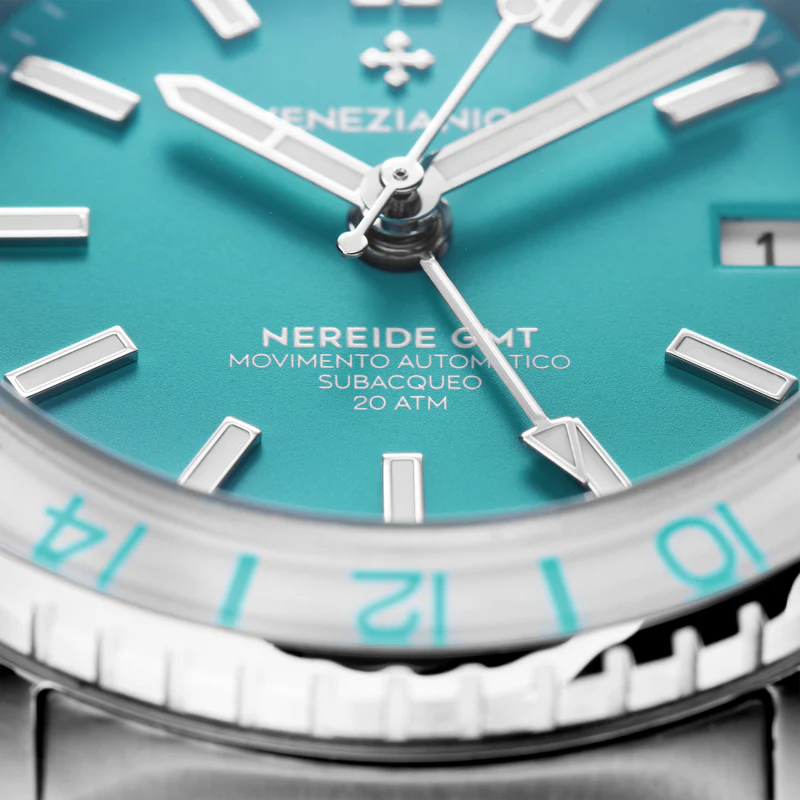 Venezianico NEREIDE GMT 機械潛水錶防水深度達 200 米,其名稱源自威尼斯海軍技術堪稱經典奇蹟之一的 Nereide 潛艇,BK7 光學玻璃打造的錶圈搭載格林威治 (GMT) 功能,高度清晰的瑞士 Super Lumi-Nova 夜光刻度和單向旋轉陶瓷錶圈,都會旅行抑或叢林冒險,皆擁有卓越不凡風格的輕奢品味。