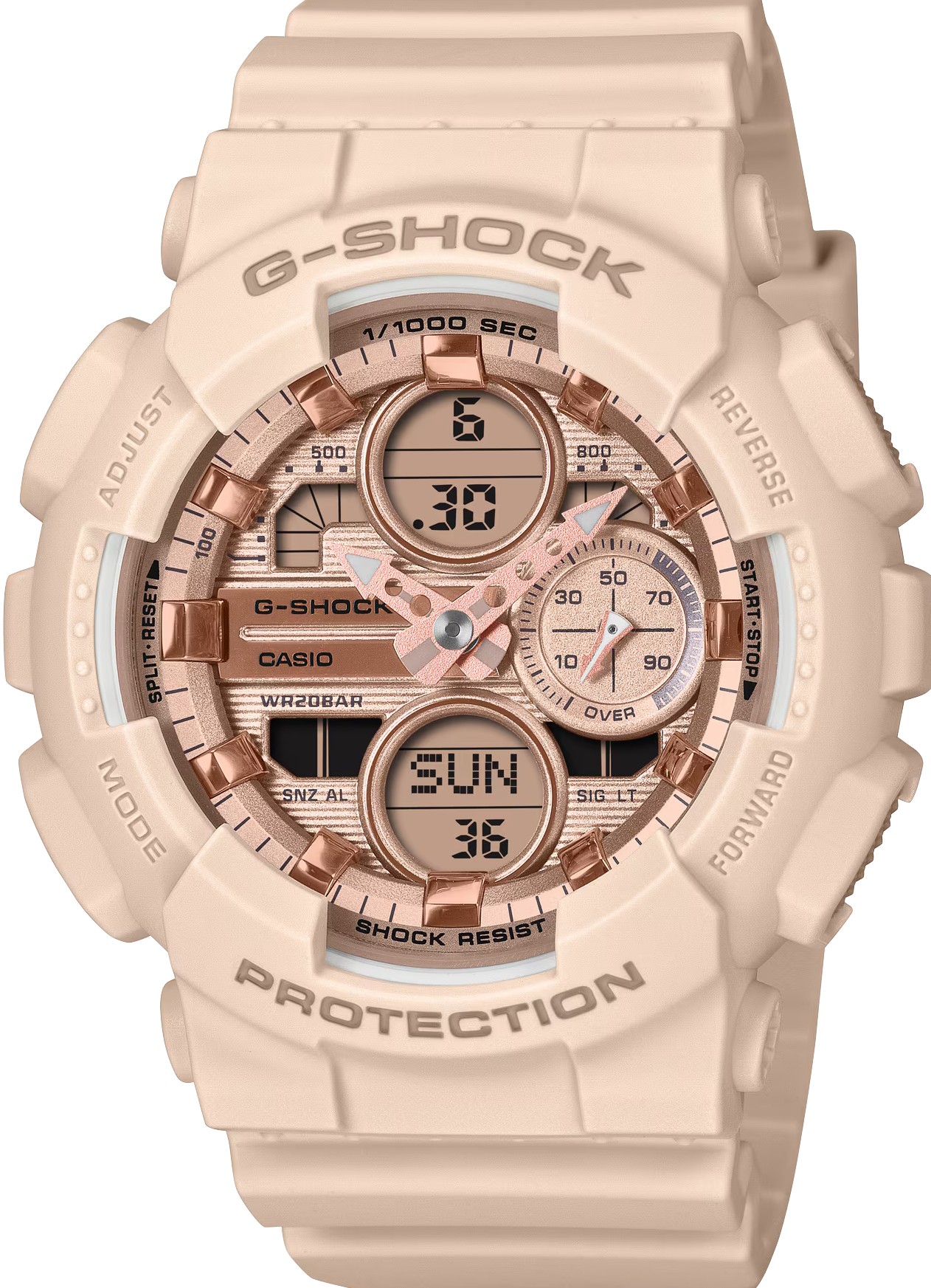 萬年鐘錶 - G-SHOCK 閃耀時尚金屬錶盤雙顯電子錶 GMA-S140PG-4A 錶徑 : 45.9mm