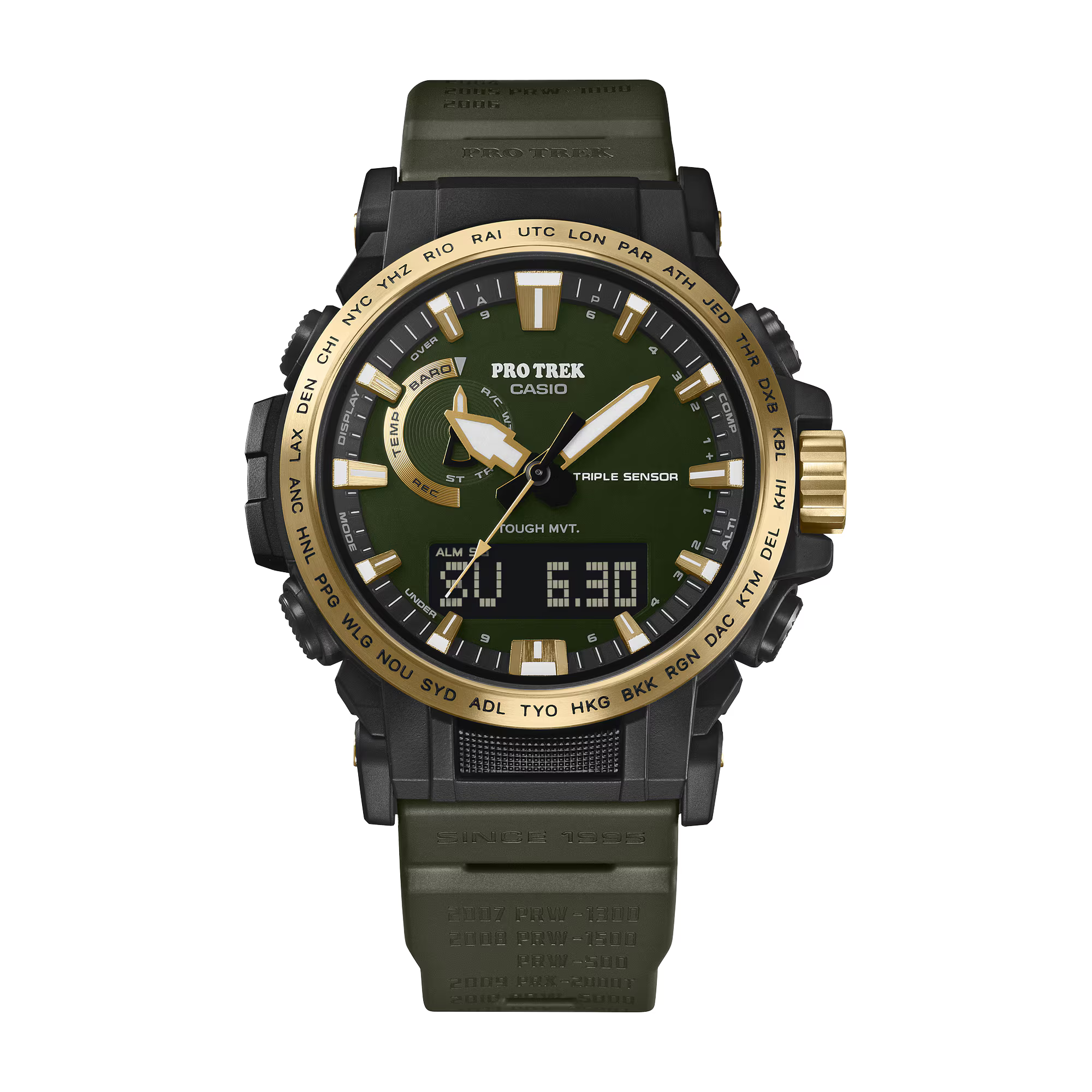 三重感應器提供羅盤方位、氣壓、高度和溫度讀數。Tough Solar 充電系統能有效率地將陽光和室內光線轉化為電力,讓您長時間從事戶外活動時無須擔心電池問題。高達 100 米的防水性能,在任何環境都能讓您安心無虞。Multiband 6 可接收來自世界各地六個站點的無線電波時間訊號,自動精準校時。