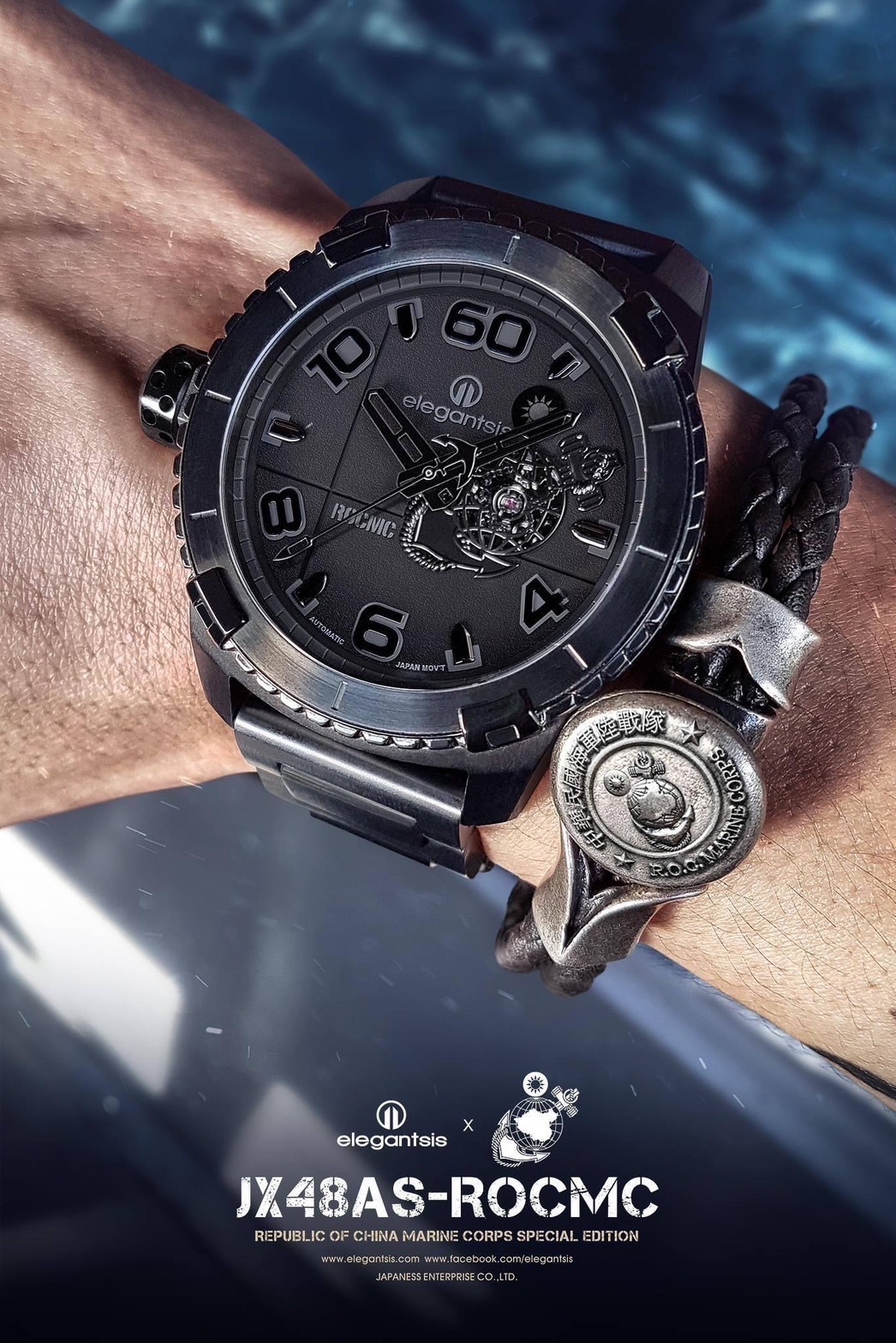 萬年鐘錶 - elegantsis 愛樂時 中華民國海軍陸戰隊-特別款 JX48M-海軍陸戰隊第三代自動機械男錶 ELJX48AS-LVTP5-NB01MA 錶徑48MM