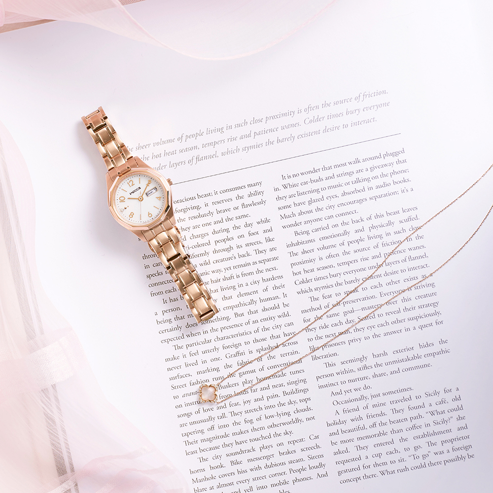 • 清新優雅玫瑰金光動能女錶  KH3-568-11